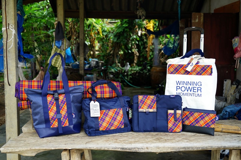 The uniqueness of the designs lies in the juxtaposition of exclusively made loincloth fabric in TCP corporate colours; dark blue, yellow, orange and red and recycled materials, both draped in unusual, sophisticated style. This symbolizes TCP Group employees’ on-going journeys to transcend old limits in becoming a world-class organization. The recycled materials also add toughness and strength to the items and are good for the environment.