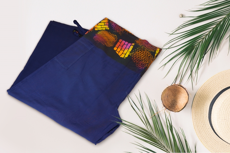 TCP color-themed fisherman pants provide a way to support Saloma Patek community enterprise, Su-ngai Kolok District, Narathiwat. Differing from Batik fabric, Patek fabric is hand block printed using stamps made of copper or metal sheet hand-delineated into different patterns. Then the copper block stamps are used to apply hot wax onto the fabric to create intricate patterns. The outstanding character of Patek fabric comes from the cracks in the wax, making it look like dry soil cracks during the dry season.