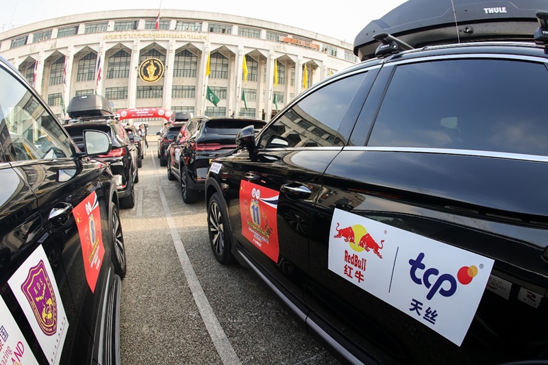 Amid the festive celebrations of the “Golden Jubilee of China–Thailand Friendship,” the flag-off ceremony for the “Thai–Chinese Friendship Caravan,” organized by the Thai–Chinese Friendship Association, was grandly held at Bangkok City Hall (Lan Khon Muang), near Sanam Luang in Bangkok. The event was attended by prominent political and business figures from both countries, including Mr. Wu Zhiwu, Minister at the Embassy of the People’s Republic of China in the Kingdom of Thailand; Mr. Korn Dabbaransi, former Deputy Prime Minister of Thailand and President of the Thai–Chinese Friendship Association; Ms. Thapanee Kiatphaibool, Governor of the Tourism Authority of Thailand and Mr. Supachai Junkeiat, CCO of TCP Group and CEO of TCP China, along with numerous other distinguished guests and representatives from various sectors. Together, they witnessed this significant moment in China–Thailand people-to-people exchanges. As a leading enterprise deeply involved in the China–Thailand market and actively promoting mutual understanding between the two nations, TCP Group fully sponsored the Friendship Caravan, ensuring its smooth departure. Through this concrete support, the Group reinforces the spirit of “China and Thailand are as close as one family” while injecting Red Bull energy into the enduring friendship between the two countries.