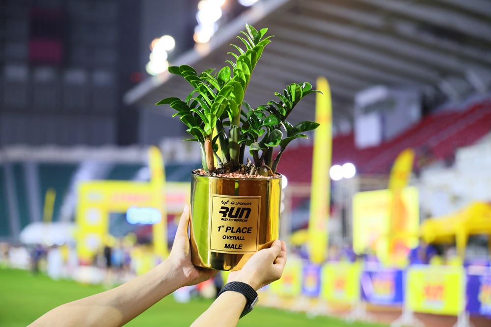 - Refresh the World: Returning refreshing power to the planet. This commitment was brought to life through running shirts made from recycled plastic packaging, while winners of the 10-kilometer category received a special eco-friendly trophy paired with an air-purifying plant. The event implemented 3R waste management—Reduce, Reuse, Recycle—to optimize resource use and minimize environmental impact. Importantly, the run aimed for Zero Waste to Landfill, ensuring no waste ended up in landfills and reducing greenhouse gas emissions, in line with the goal of making the event truly Net Zero. Meanwhile, all plant-fiber food packaging used at the event was collected and delivered to Gracz for composting into nutrient-rich soil, which will be given to the Royal Forest Department for seedling cultivation—helping regenerate forests, capture greenhouse gases, and restore nature sustainably.
