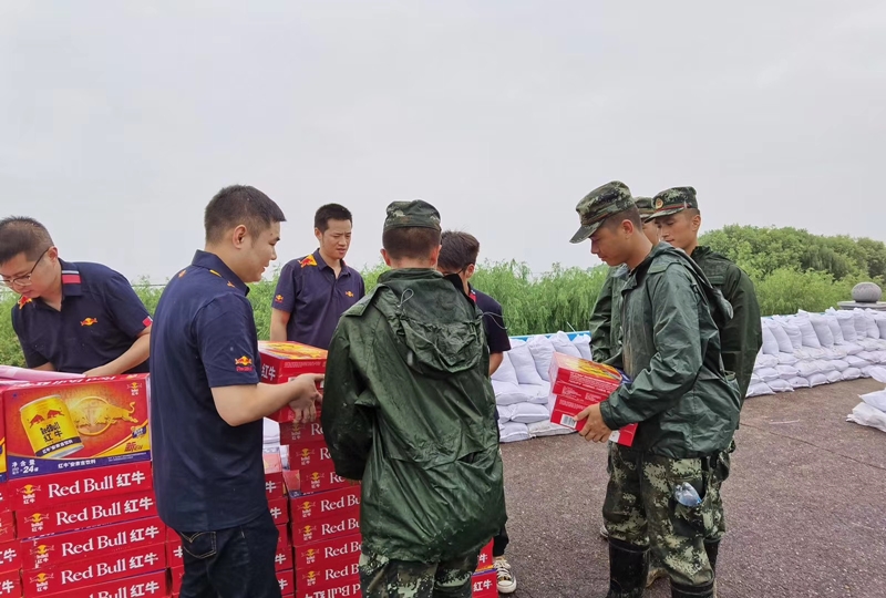 我们向武警合肥支队、巢湖市中庙街道办事处、六安市双河镇镇政府办公室、阜阳市阜南县民政局和阜阳市颍上县总工会等抗洪救灾单位送去了红牛饮料500箱,愿红牛饮料在暑热中为抗洪人员带来一丝清凉、一股力量。