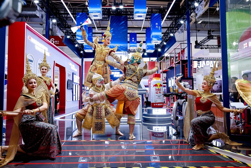 天丝集团的展台以“链接”为灵感,通过数字化展示手段,生动呈现公司从上游优质原材料采购、中游智能化生产与仓储物流,到下游多元化消费场景创新的全链路实践。此外,为庆祝2025年中泰建交50周年,展台设计特别融入“中泰友谊金色50年”元素,并定期呈现泰国传统文化代表——孔剧表演,吸引众多观众驻足观看,成为中泰文化交流的亮丽风景。